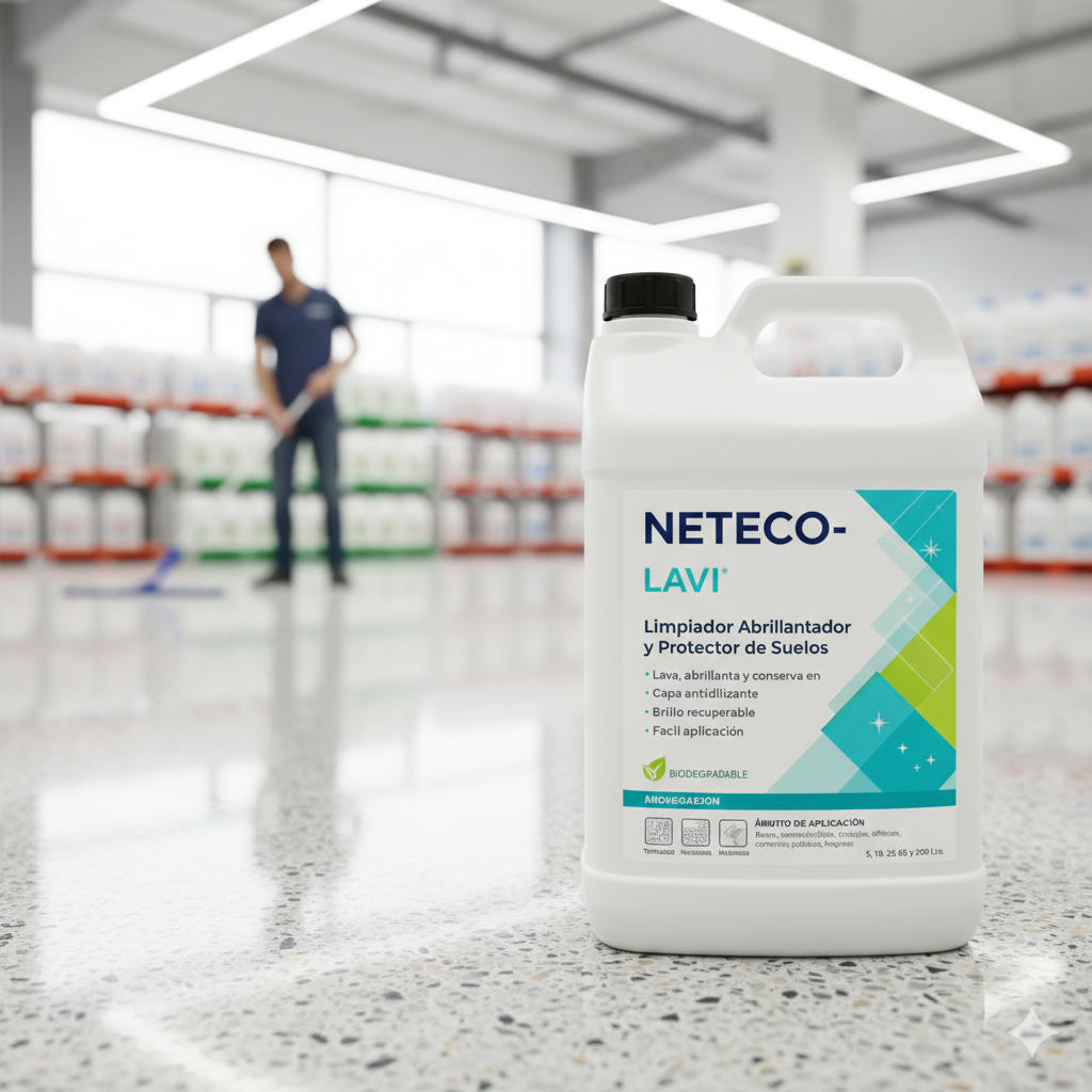 DESCRIPCION : NETECO-LAVI, es un producto para el lavado, abrillantado y conservación de todo tipo de suelos duros